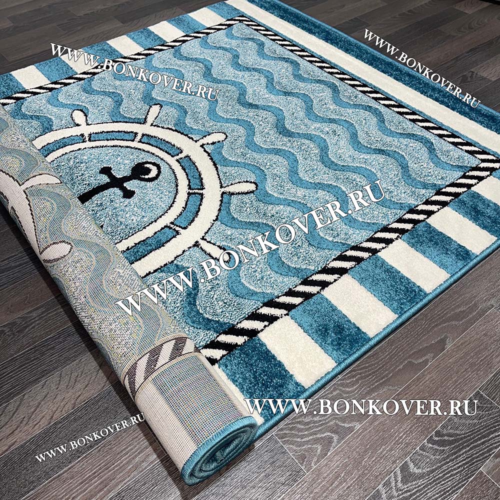 Детский ковер Карпет new 03 Синий Якорь Морская тематика Дизайн 03 не деформируется, сохраняет свою форму. Ворс быстро восстанавливается, что не оставляет на поверхности изделия неприглядных отметин.