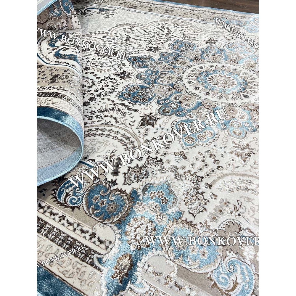 Ковер Турция Для Гостиной 07 Бежевый с Синим станет великолепным преображением жилого помещения, подчеркивая высокий статус хозяина.